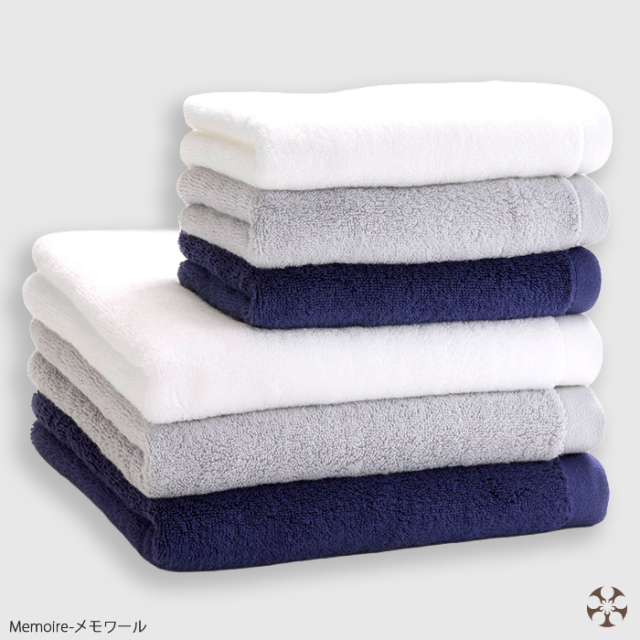 メモワールは、肌触りが良く吸水性にも優れたタオルですので、日々のバスタイムや洗面周りで快適にお使いいただけると思います。